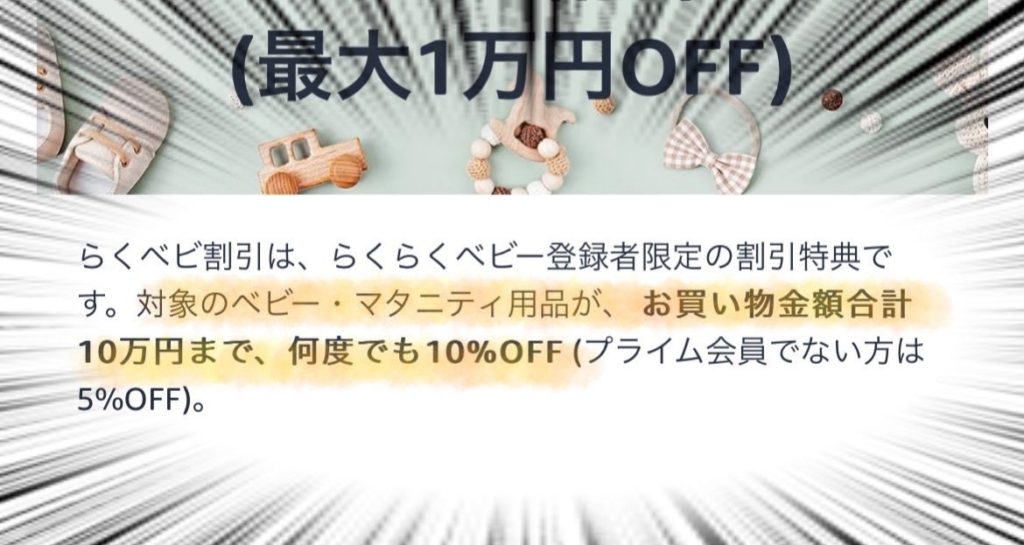 ✔️ベビー・マタニティ用品が プライム会員なら10%OFF(上限1万円)