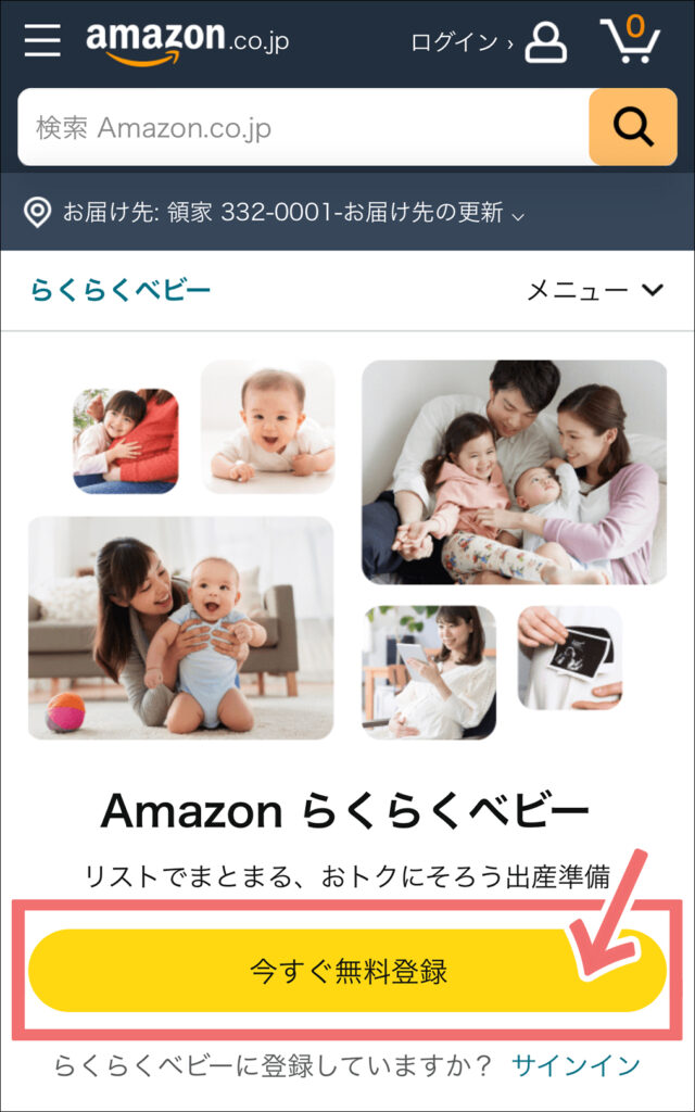 ステップ2:Amazonらくらくベビーに登録