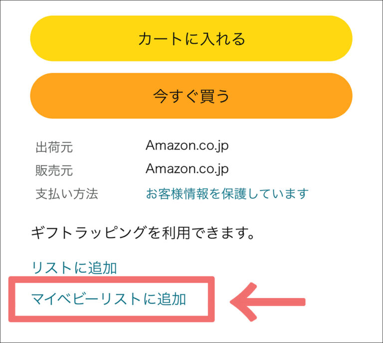 そのまま買うと割引が受けられないから、マイベビーリストに追加してから買うの忘れないで!(泣)