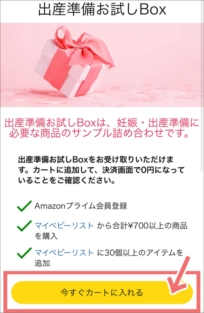 - 「出産準備お試しBox」はAmazonプライム会員限定の特典になります。